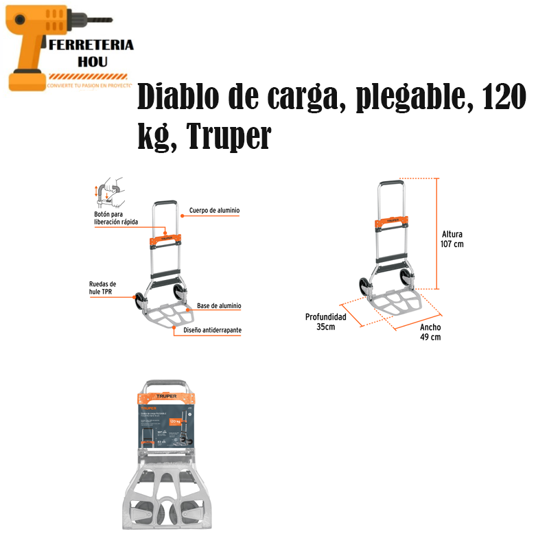 Cuerpo y base 100% de aluminio – Diablo o Trocket de Carga plegable 120 kg