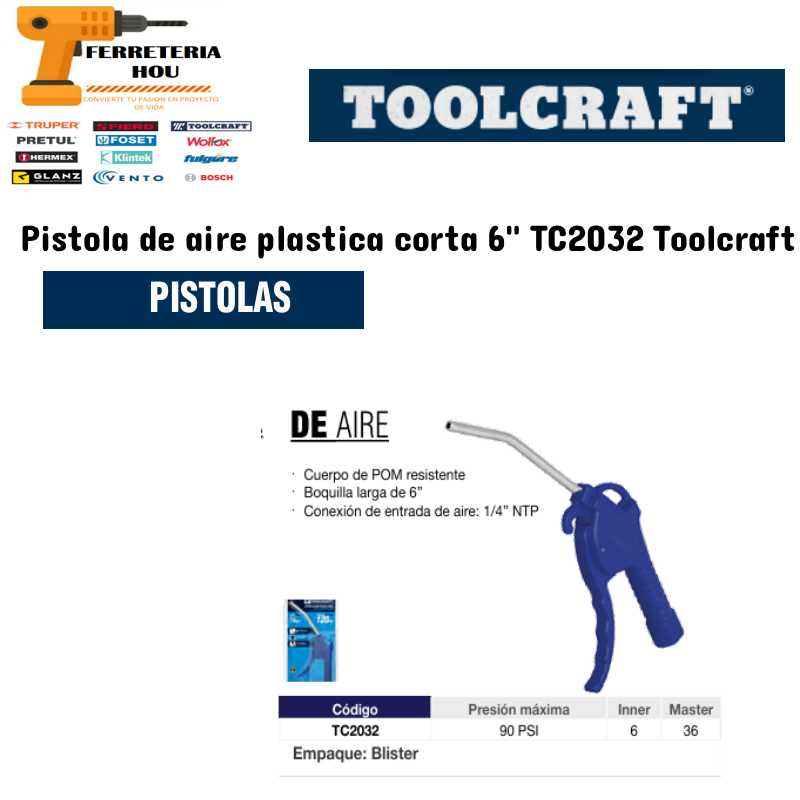 Pistola de aire plástica corta 6″ TC2032 Toolcraft