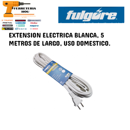 EXTENSION ELECTRICA BLANCA 5 METROS DE LARGO, USO DOMESTICO. MARCA FULGORE
